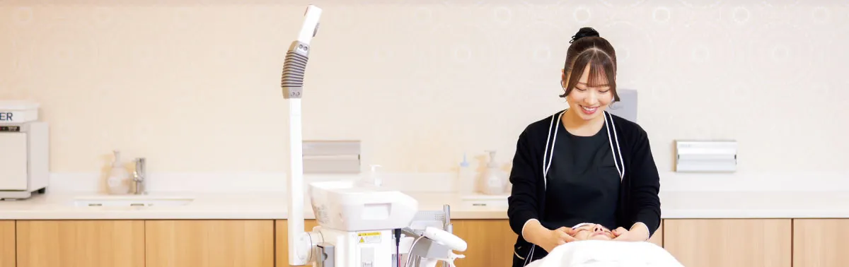 実際にエステサロンで使用されている最新の設備・機器を使用して学生同士がお互いにモデルとなって技術や接客をトレーニング。最新機器での施術を体感できます。外見の美しさだけでなく身体の内側から美しさに働きかけるインナービューティーを学んで自分自身もキレイになれます。