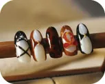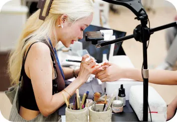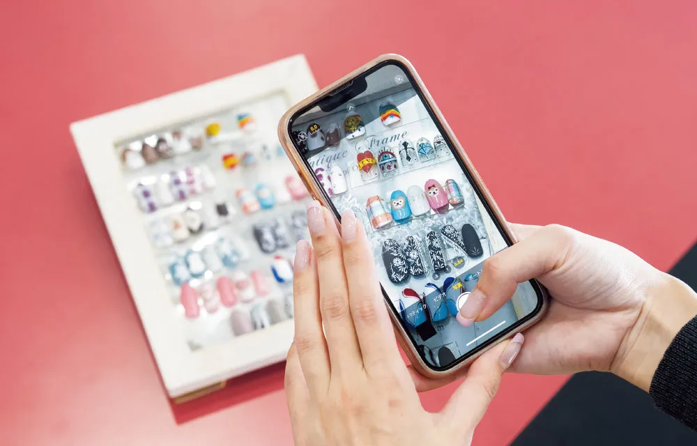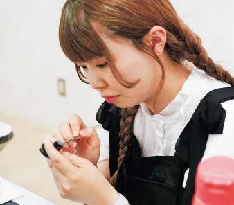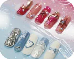 授業では習得した技術を磨くために、マグネット、ストーン、パール、メタルパーツなどを自由に使って、トレンドやテーマに合わせてオリジナルの作品を仕上げます。