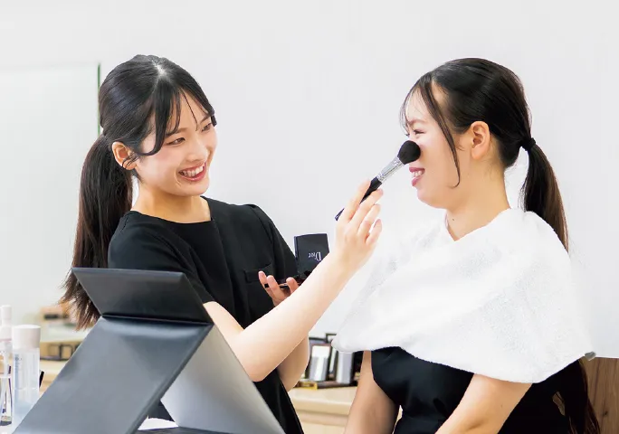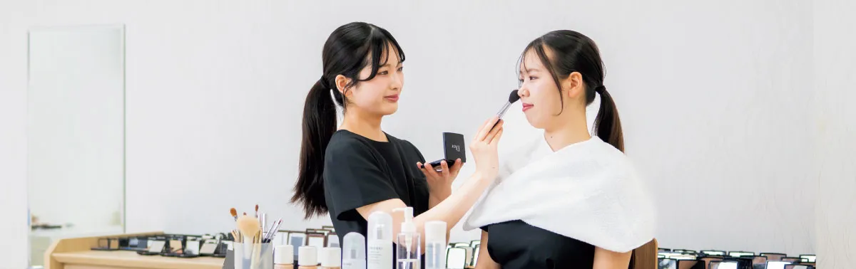 メイクやエステ、ネイルの基礎を学び、将来像を明確にしてから適性に合わせてコースが選べます。