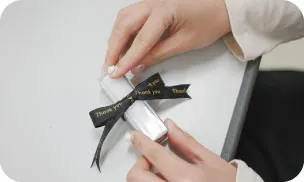 メイク技術はもちろん、カウンセリングや商品のラッピングまで繰り返しロールプレイングしながら、接客時にスマートに対応できるよう、すぐに役立つ知識やスキルを学び、リアルな接客力を身につけます。